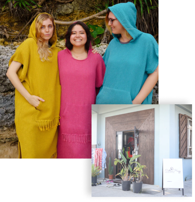 ビーチシーンと相性が良いCottonHuggは2023年に海をテーマにしたオリジナルデザインを製作しOcean Sreiesを発売。ビーチクリーン活動への協賛、トルコ・シリア地震募金支援、トルコ・デニズリへの社会貢献を掲げトルコと日本を繋ぐ架け橋として沖縄を拠点に活動しています。